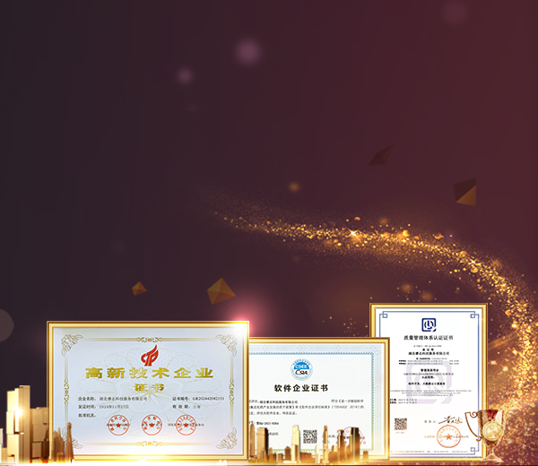 通過不斷的努力公司被認定為“國家高新技術企業”、“雙軟認證企業”、“科技型中小企業”、“IOS9001國家質量管理體系認證”,榮獲“雙十佳單位”、“信守承諾企業”、“湖北省軟件行業協會會員單位”、“十堰市中小企業協會副會長單位”、“十堰數字經濟產業聯盟副理事長單位”等榮譽稱號。
